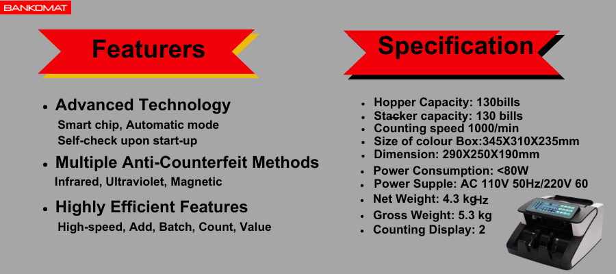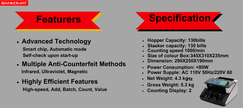 [COUNTERFEIT NOTE DETECTION]- This machine automatically detects fake notes with MG(Magnetic), UV(Ultra Violet), IR(Infra Red) Features. This machine has voice feature. It announces when Fake Note Detects. You can switch off the voice feature.